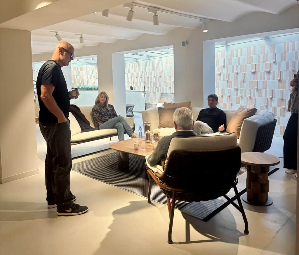 In de showroom—gelegen in hetzelfde gebouw als de fabriek—konden we eindelijk de nieuwe Tilos sofa in het echt bewonderen. Wat een fantastische zit heeft deze bank!