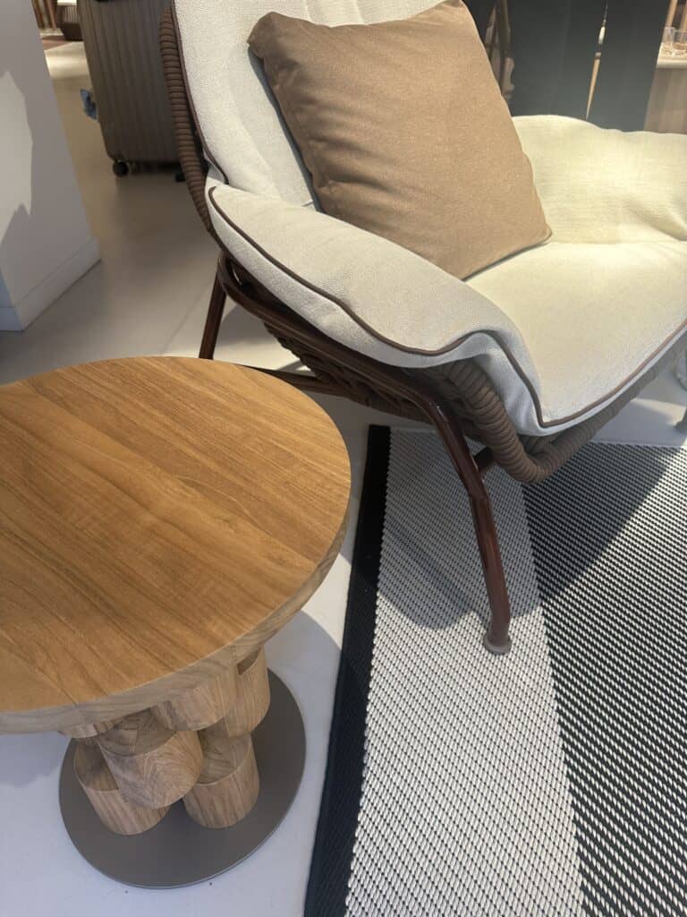 De serie is verkrijgbaar in twee kleurvarianten weaving met of aluminium of teak onderstel en wij vielen meteen voor de donkere uitvoering… die binnenkort onze eigen showroom komt versterken.