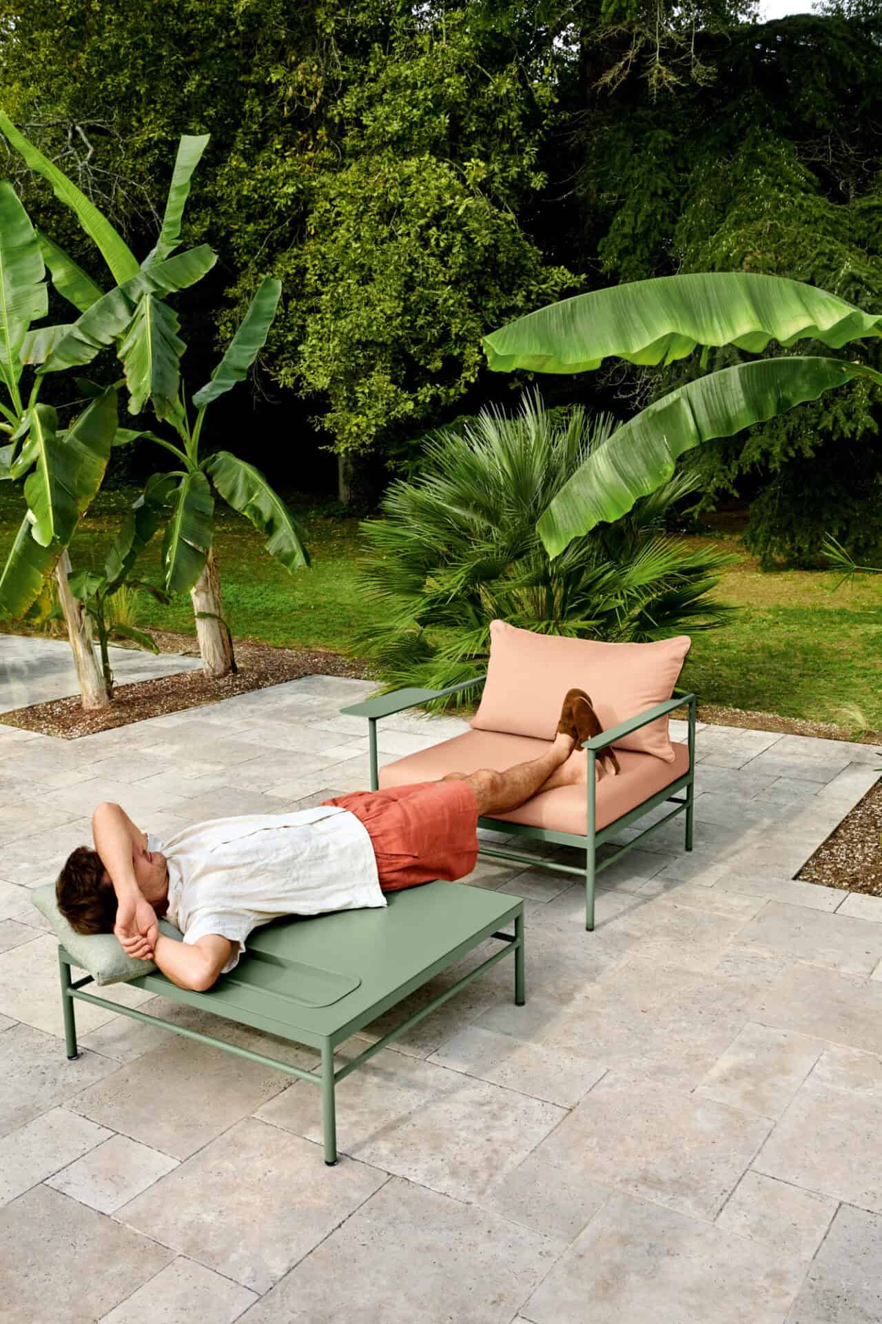 Het duurzame aluminium frame is verkrijgbaar in een zorgvuldig geselecteerd palet van Fermob-kleuren en kan worden gecombineerd met diverse kussenopties. Zo creëer je altijd een perfecte match met jouw terras of tuin.