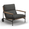 De Zenith collectie van Gloster is ontworpen door Henrik Pedersen. De Zenith lounge heeft een frame van meteor gepoedercoat aluminium en Armleuningen van teak. Het zitvlak is gemaakt van geweven riet dat tegen alle weersomstandigheden bestendig is. Bij deze lounge stoel zijn kussens inbegrepen. Genoemde prijs is met kussens in Grade B.