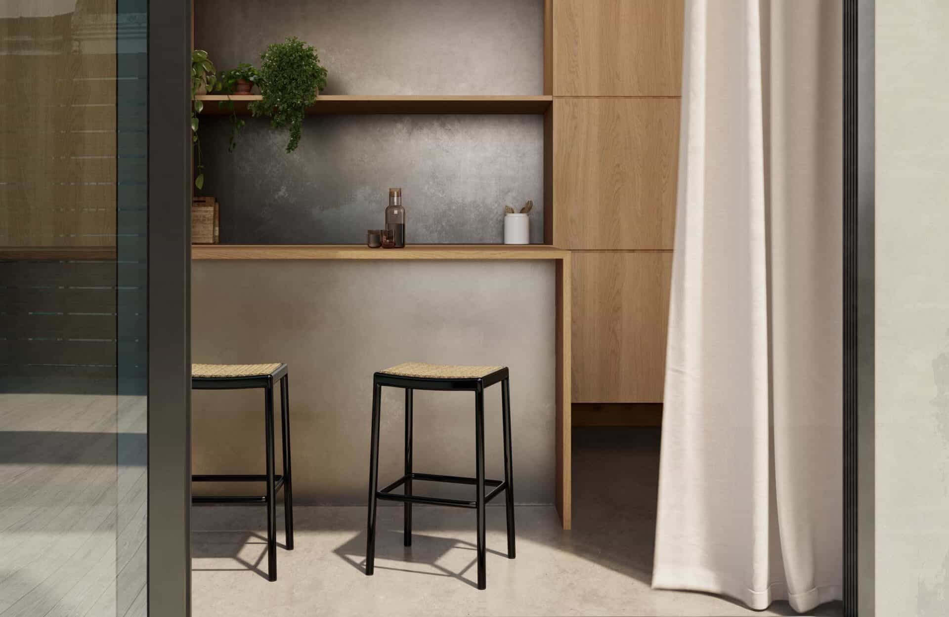 Elke uitvoering geeft de barkruk een eigen karakter, terwijl het design consistent en tijdloos blijft.