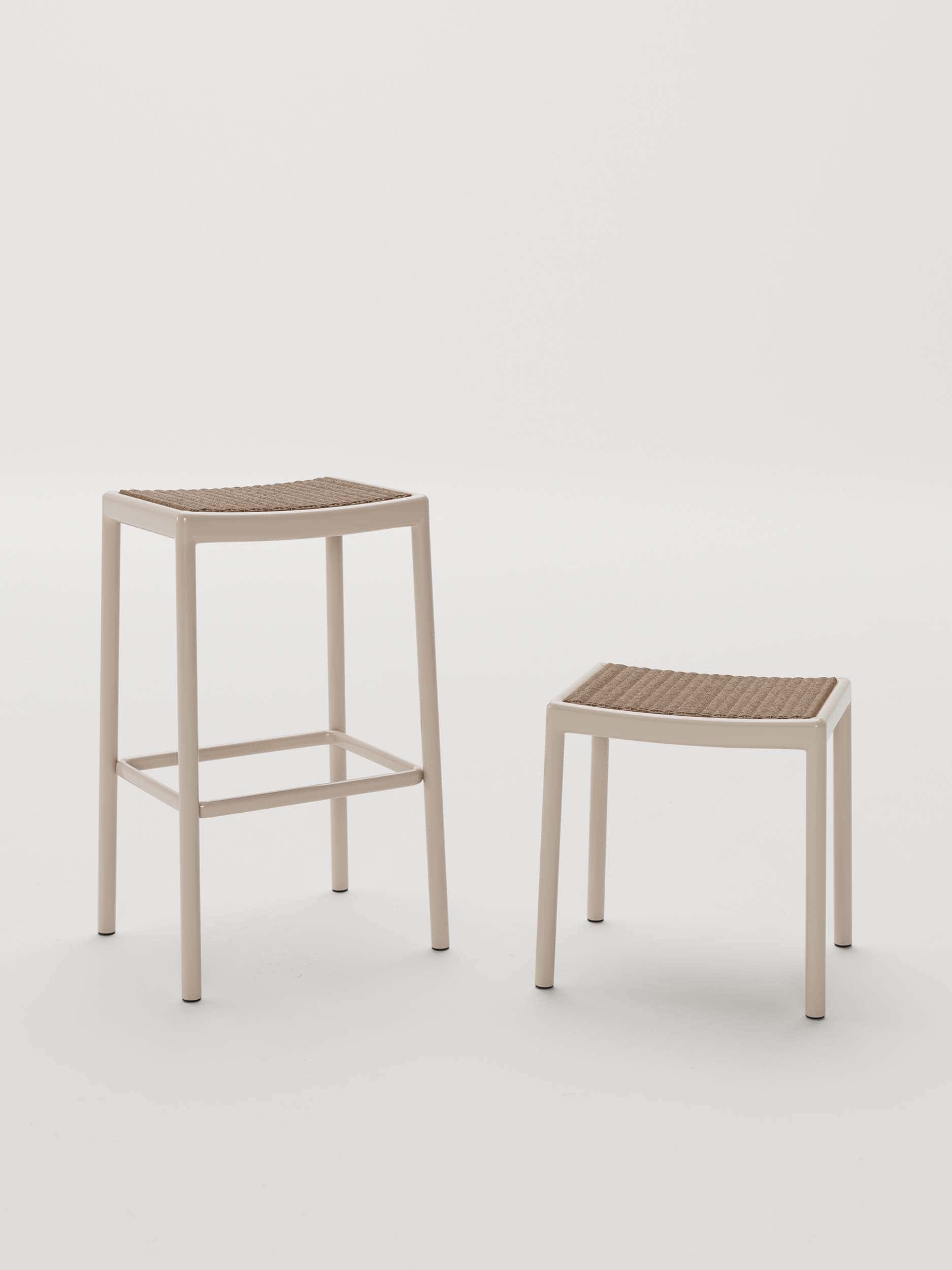 Het gepoedercoate aluminium onderstel is licht van gewicht, roestbestendig en bestand tegen diverse weersomstandigheden. Hierdoor is de Passage bar stool perfect geschikt voor terrassen, buitenkeukens, horecaprojecten en luxe tuinen.
