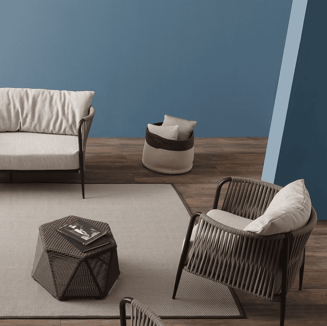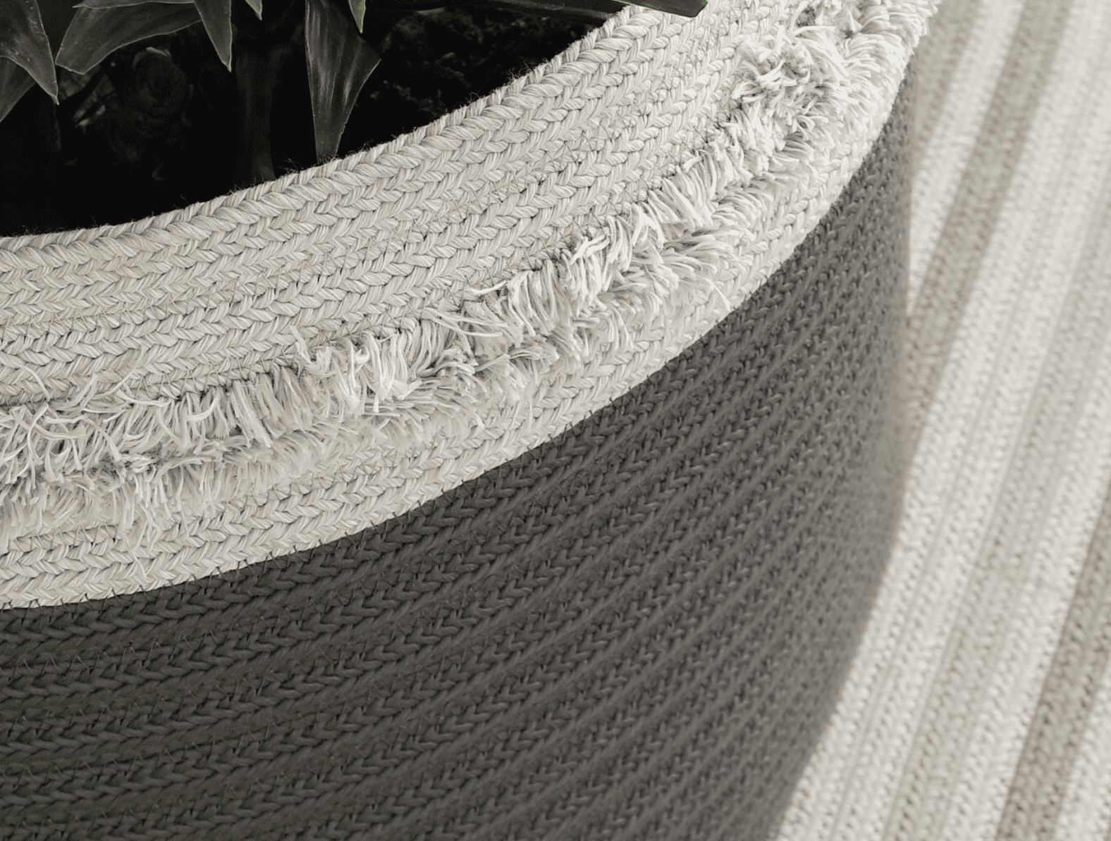 Dankzij het gebruik van het exclusieve Nodo-garen geniet je van een visuele eenheid die bij andere merken ondenkbaar is. Omdat deze manden uit exact hetzelfde materiaal zijn vervaardigd als de banken en fauteuils, ontstaat er een perfecte chromatische match. Bovendien zijn de manden volledig weerbestendig, waardoor ze zonder problemen het hele jaar door buiten kunnen blijven staan zonder aan kleurkracht in te boeten.