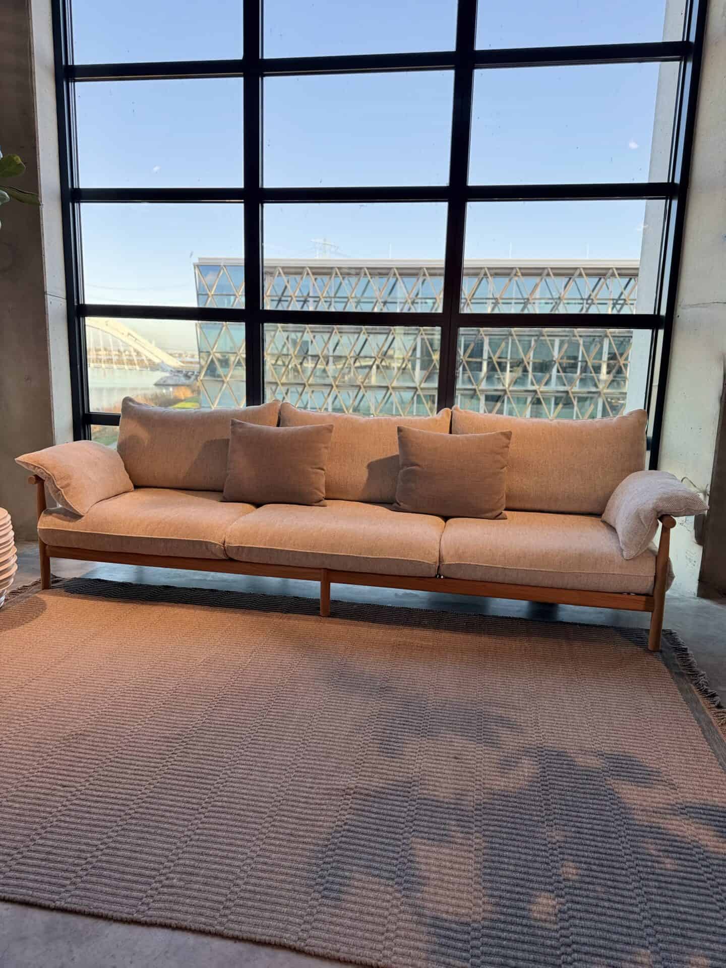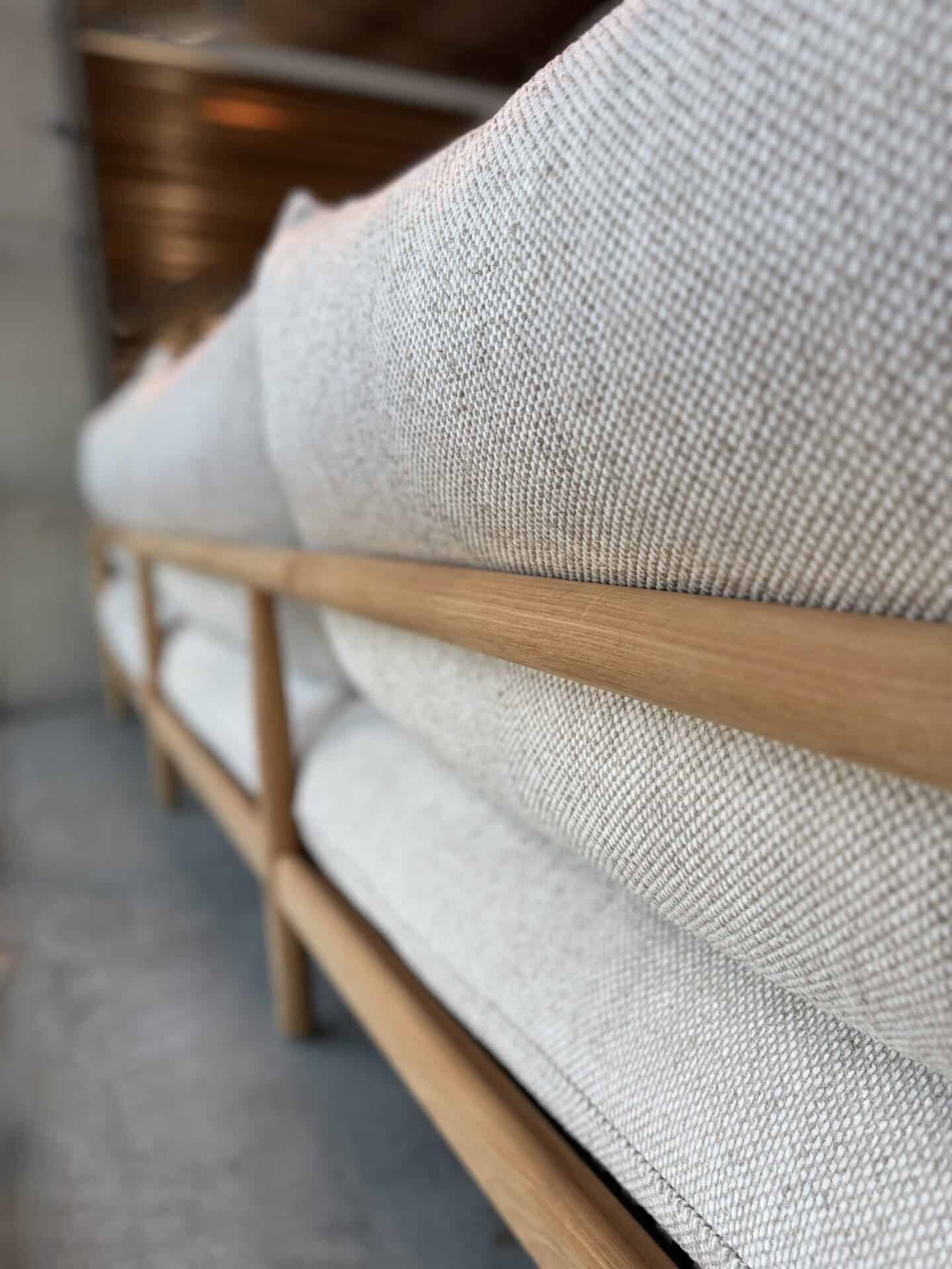 Onze Dedon Tibbo 3-seater lounge bank mag een nieuwe bestemming krijgen. De Tibbo is een royale sofa waarvan het frame is uitgevoerd in hoogwaardig teak. De dikke, uitnodigende kussen liggen op een bedje van geweven Dedon fiber. Dit komt het zitcomfort extra ten goede en is onderhoudsarm.