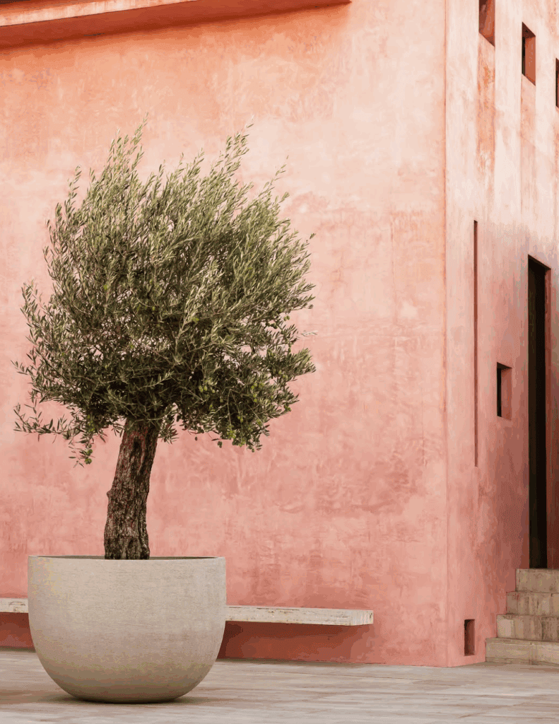 - Gevormde potten & plantenbakken: niet meer alleen rechte kubussen of klassiek trompetvorm. Organische vormen, verzonken potten, of potten die lijken op abstracte kunstwerken.